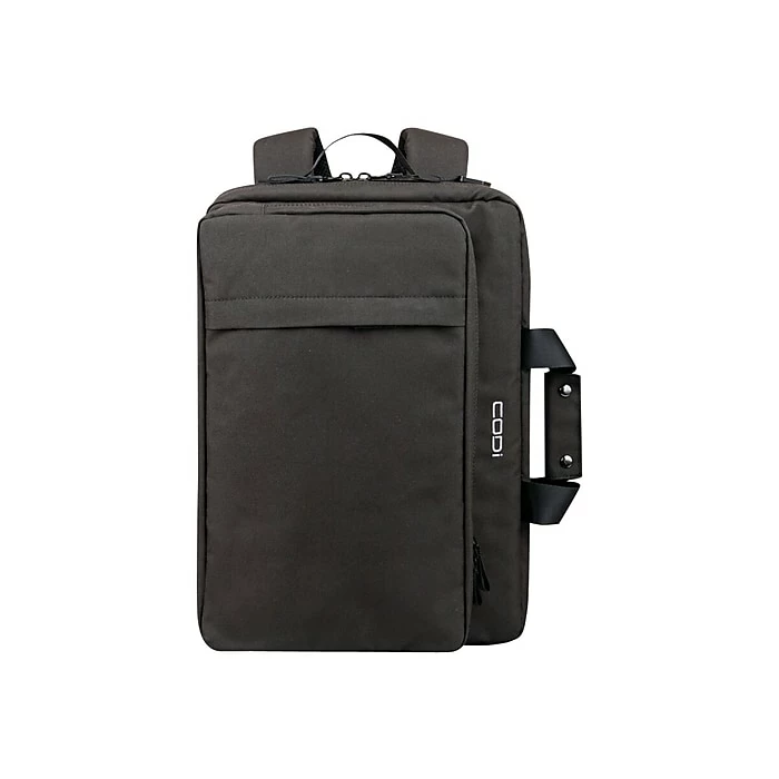 Proud to play a part in reducing ocean-bound plastic, CODi’s new Terra Hybrid Briefcase/Backpack delivers. This briefcase/backpack has exterior materials made 100% from 34 recycled plastic bottles. All of the air mesh, webbing, and lining are made from ocean-bound plastic, as well.Go from business to casual as this bag transforms from a briefcase to a backpack by slipping the removable and adjustable padded shoulder straps out from their stow-away zip compartment. As a bonus, the removable/adjustable shoulder straps also allow you to wear this as a messenger bag.With a broad-spectrum antimicrobial coating, the Terra bag helps prevent the growth of bacteria. Protect your laptop with a dedicated, padded 15.6″ compartment. Get easy access to your essentials with a front pocket and several dedicated internal compartments. Complete with rain guard protection for those rainy commutes, the Terra bag also has a breathable air mesh back panel for added comfort.