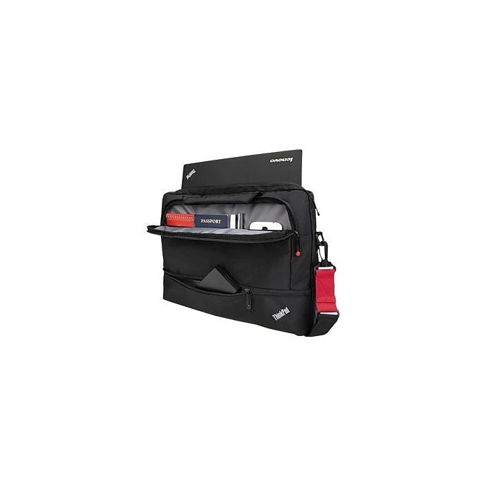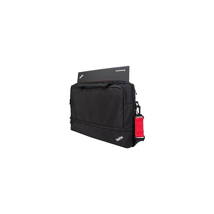 Lenovo® Essential topload case for ThinkPad offers shoulder strap, padded carry handles and trolley strap that attaches to rolling luggage for easy travel. Case measures 12.1″ x 15.6″ x 2.5″ and comes with a ergonomic shoulder strap.