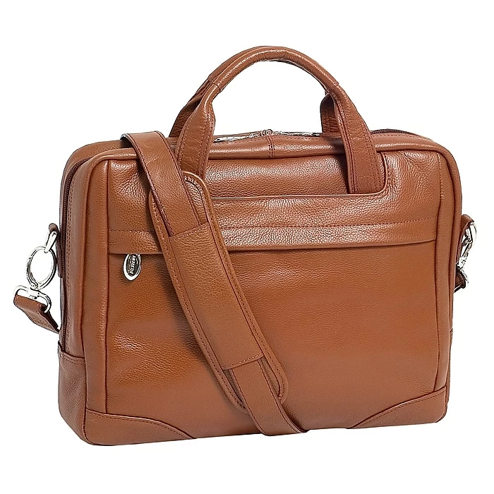 Front zipper pocket holds small accessories. Main zipper compartment features an interior organizer for pens, business cards and small devices, one file pocket, as well as a built-in padded laptop sleeve that fits and protects most laptops up to 15″. Adjustable, non-slip, and Removable, shock absorbing shoulder strap that alleviates body strain included. Add a bag feature for easy attachment to carry on.
