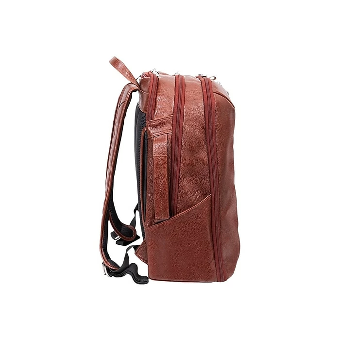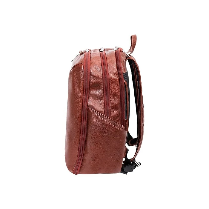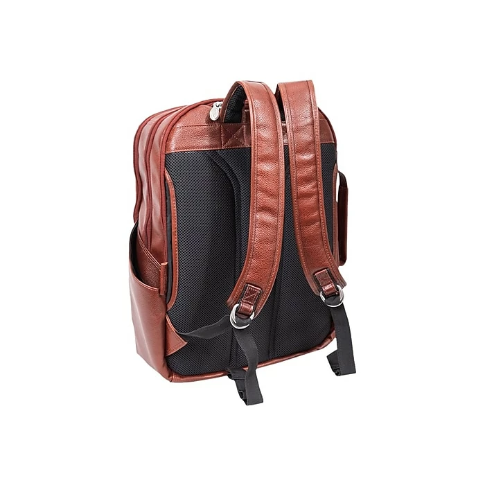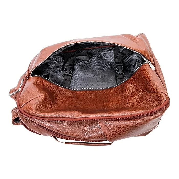 If you’re planning a business day trip, this McKlein U Series South Shore 18″H leather carry-all backpack is the perfect travel companion to carry clothes and important devices you need for success. The top carry handle and pull tab help open access to your stored items with ease. The main front vertical full-length compartment is great for storing clothing and travel essentials with tie-down straps. The two side pockets are perfect for keeping water bottles and umbrellas easily accessible. The small top zipper pocket keeps your phone and keys secure and easy to access. The middle compartment features a built-in 17″ laptop sleeve, a business accessory organizer, and an interior full-length zipper pocket. The back compartment comes complete with a secure tablet pocket and storage for files and documents. Keep your backpack comfortable with padded air mesh adjustable backpack straps with a piggyback side attachment, or carry it as a briefcase with the side handle.