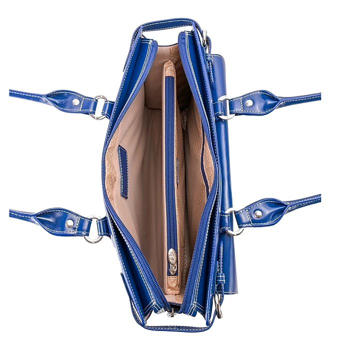 Well organized top zip compartment briefcase provides quick access to main section with separate file divider. Front organizer section with storage space for media devices, business cards, key holder and pens. Interior zipper pocket helps organize. Double compartment divided by secured zipper pocket for important documents. Long tubular straps for carrying over your shoulder.