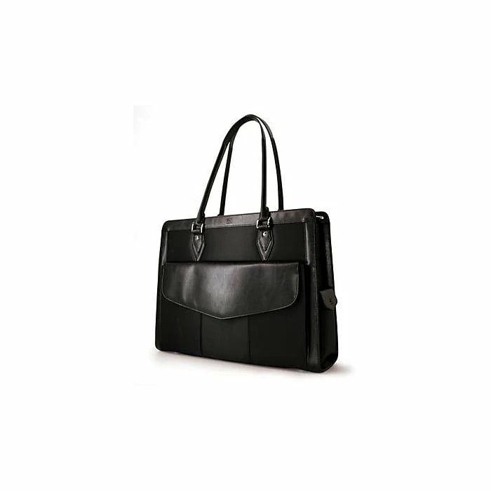The Mobile Edge Geneva black microfiber handbag has superior SafetyCellâ„¢ computer protection compartment that fits 17.3″ laptop. It features exterior cell phone pocket, three convenient exterior accessory pockets and EZ-access ticket pocket for convenience. This handbag has wireless security shield pocket that safeguards wireless devices from data theft, spam and viruses. It features stylish fittings and self-healing zipper to enhance the look.