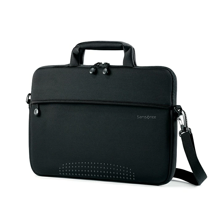 Samsonite Aramon NXT Carrying Case for 14″ Notebook in Black is constructed with neoprene, a synthetic rubber for strength and durability. Featuring zips around three sides and a zippered accessory pocket, it can also be used as a backpack.