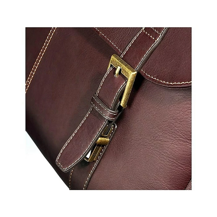 - Lush brown leather offers quality and durability in a laptop carrying case