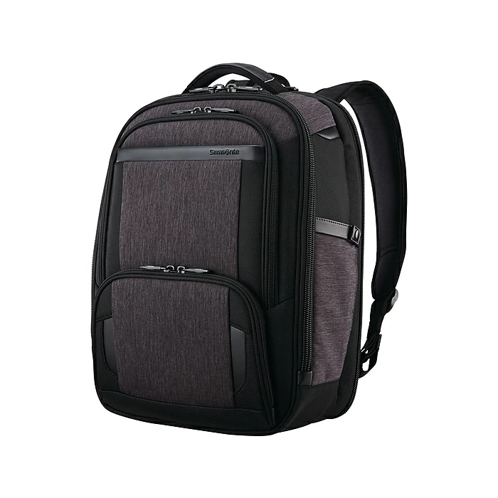 This versatile Samsonite Pro slim backpack is loaded with features for ultimate organization. Featuring robust solutions for your business needs and tech upgrades like wireless charging, RFID protection, USB ports for on-the-go charging, and padded tech compartments for your laptop and tablet, this backpack ensures your essentials will stay organized, safe, and protected.