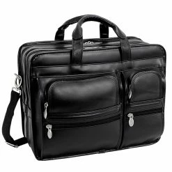 McKlein Clinton P Series Laptop Rolling Briefcase, Black Leather (88445)