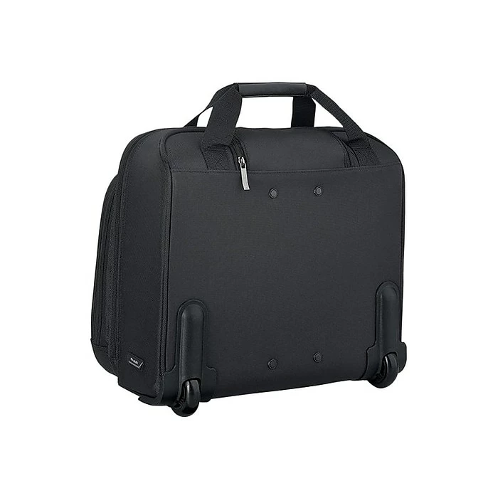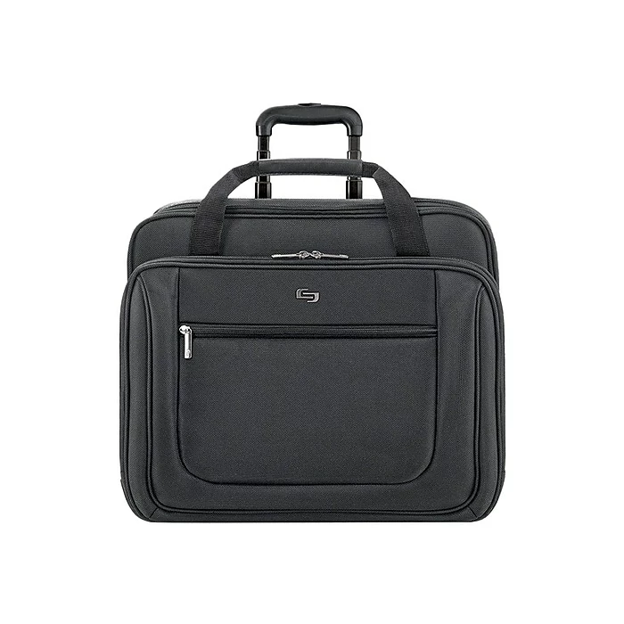 Carry your laptop, file folders and other mobile office supplies in this rolling case. A padded compartment shields your computer from accidental damage, and a divided file compartment keeps paperwork neatly sorted. Use the front organizer pocket to stash pens, pencils and other small items. With a hidden push-button telescoping handle and sturdy casters, this Solo New York Bryant case rolls anywhere you go.
