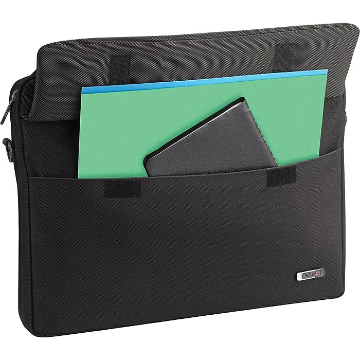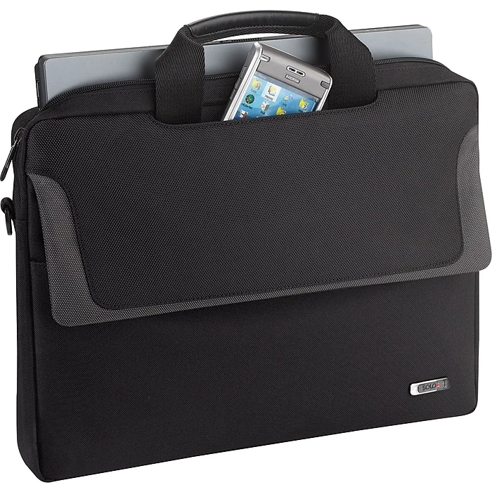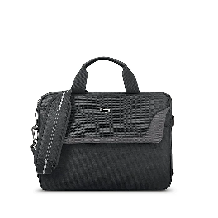 Solo New York Pro Slim Brief has a padded compartment for laptops up to 14.1″. The slim brief also comes with a removable adjustable shoulder strap.
