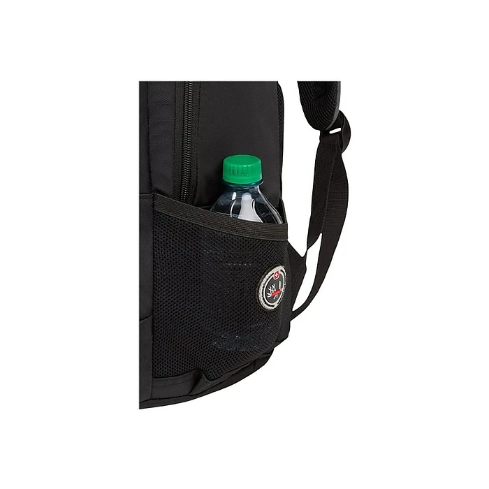 - Easily accessible water bottle holder placed safely away from sensitive electronics and important files