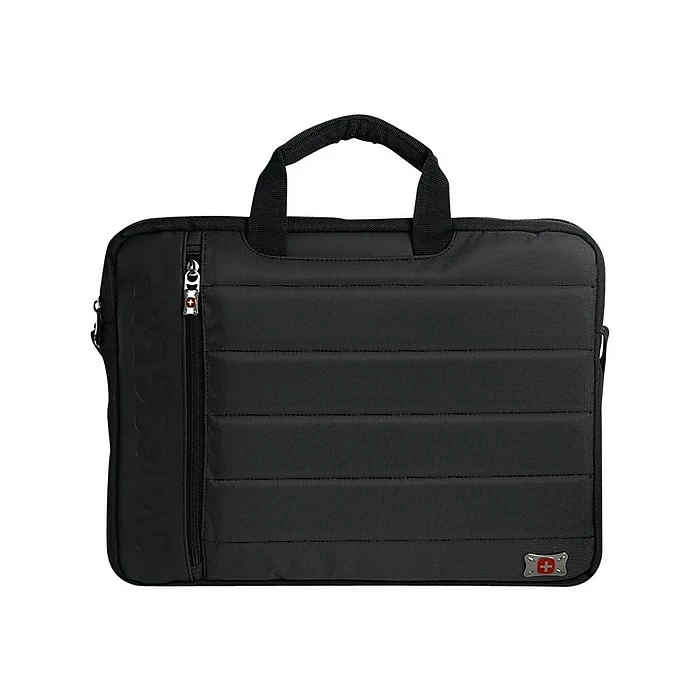The Swissgear Anthem 17″ Laptop Slimcase Bag is designed to be your go-to digital bag. Made with quality materials and lasting hardware, keep your digital necessities safe and secured inside this multi-compartment case. A large organizer compartment lets you easily access your things from divider pockets while a designated laptop compartment can hold up to a 17″ laptop. Streamlined with versatility, grab its padded handles or sling its adjustable strap around your shoulders. An add-a-bag strap lets you conveniently attach this case to your favorite spinner. Complete with an emblazoned SWISSGEAR logo, rely on this bag to transport your office or campus essentials.