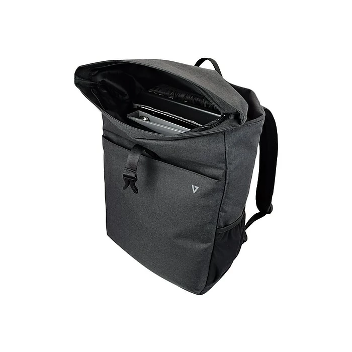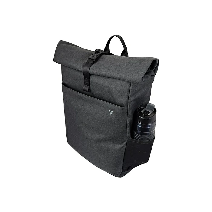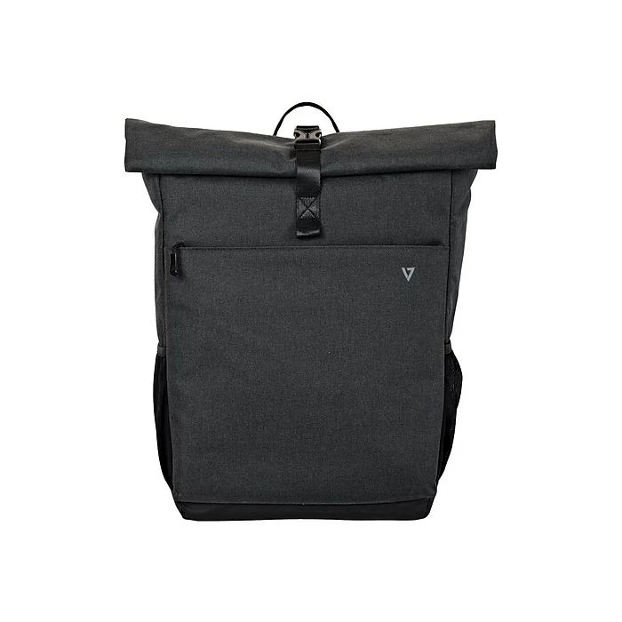 The 16″ Rolltop Laptop Backpack from V7 is sleek, durable and made from a weather-resistant, Eco-Friendly material. The CBXT16 backpack features a well-padded laptop compartment to keep devices secure. The cushioned and padded back of the bag makes it comfortable to carry. The Rolltop style backpack features three zippered compartments; one for books or clothes, one organizer/workstation, and the outside, quick-access compartment to grab what you need most often. The backpack also has two water bottle holders to keep your hands free while on the go.