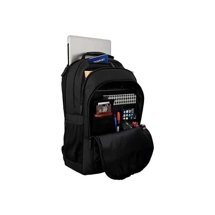 The Professional Laptop Backback is the contemporary solution for on-the-go professionals or students. Using durable denier nylon, the backpack is structured with a dedicated padded notebook section, ample organizational room featuring a workstation with key clip, pen loops, accessory pockets and a business card holder, as well as an MP3 headphone port and water bottle pockets. Its sleek ergonomic design ensures top comfort and an attractive, modern style.