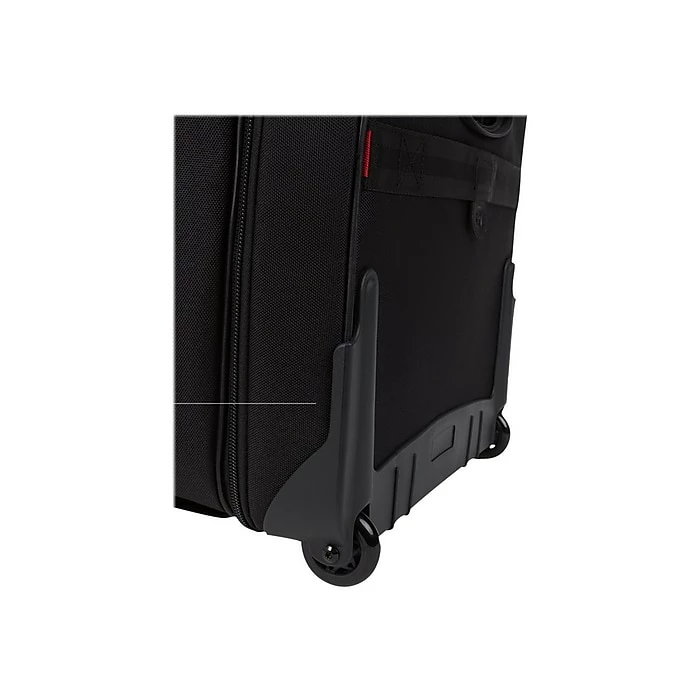 - In-line skate wheels let you roll a fully loaded case through airports or office buildings